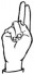 На ћирилици написано БЛАЖА ОДАВИЋ састоји се из 11 слова [?]. Исписано ћириличном једноручном азбуком за глувонеме:
